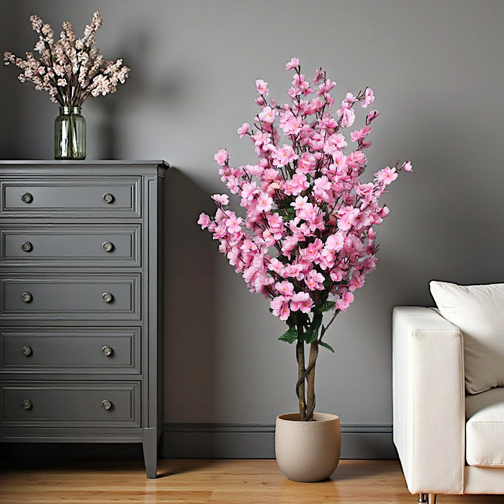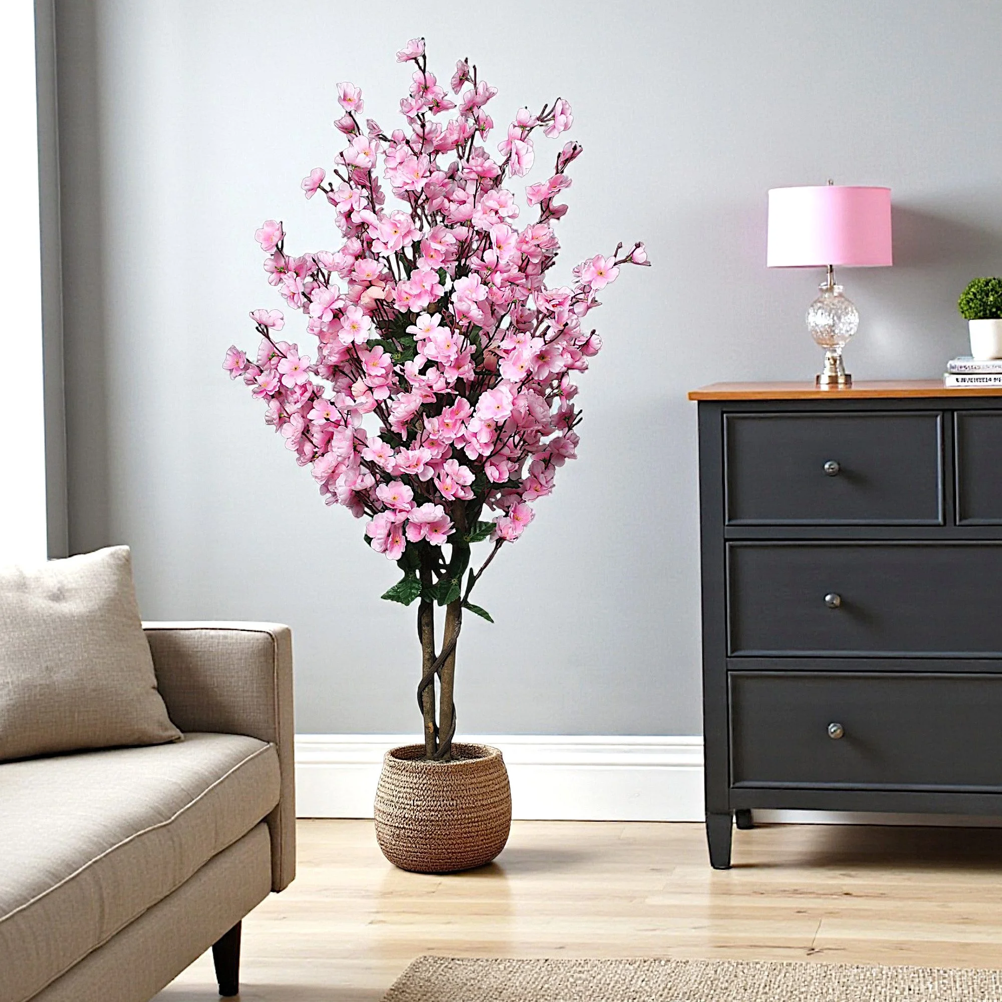 Künstlicher Blütenbaum • Echtholzstamm • fertig im beschwerten Topf
