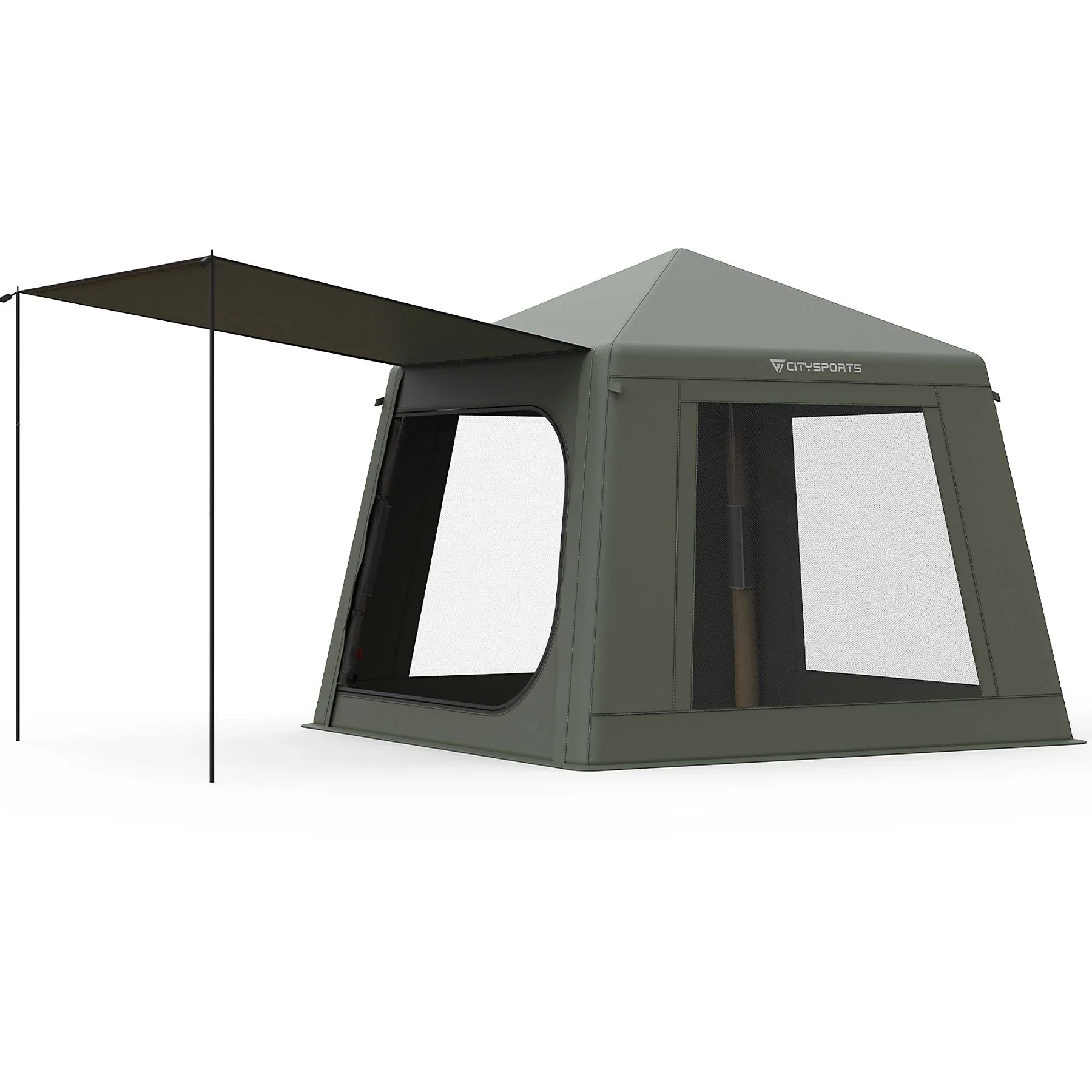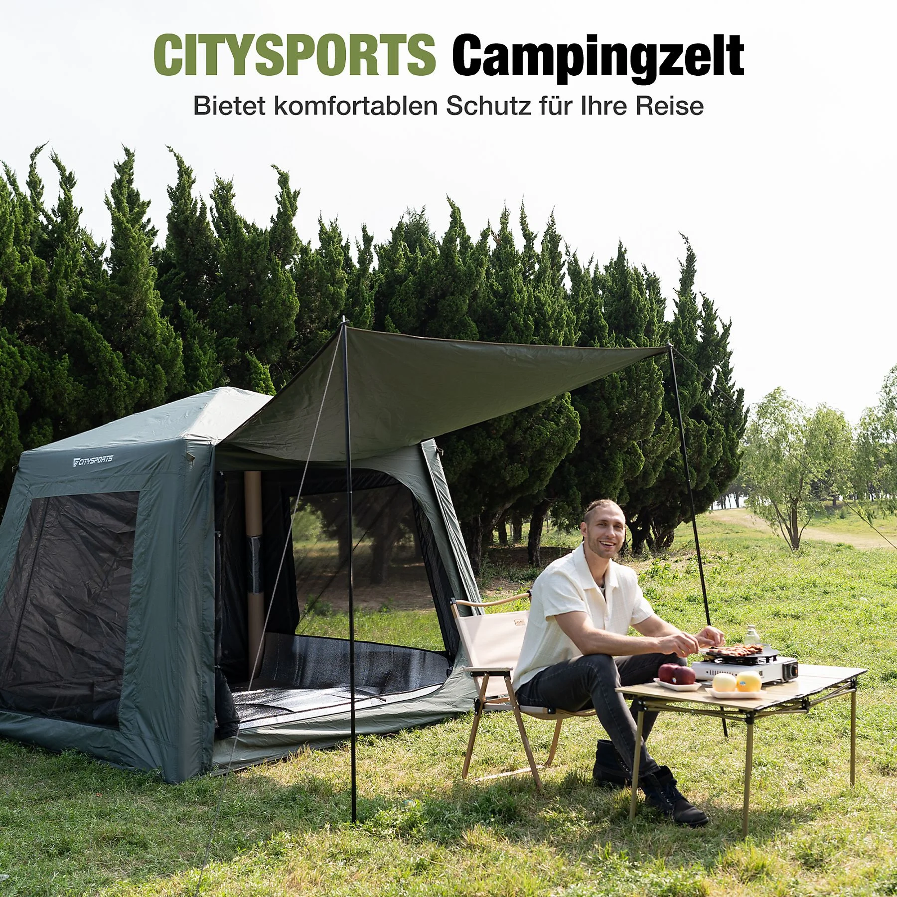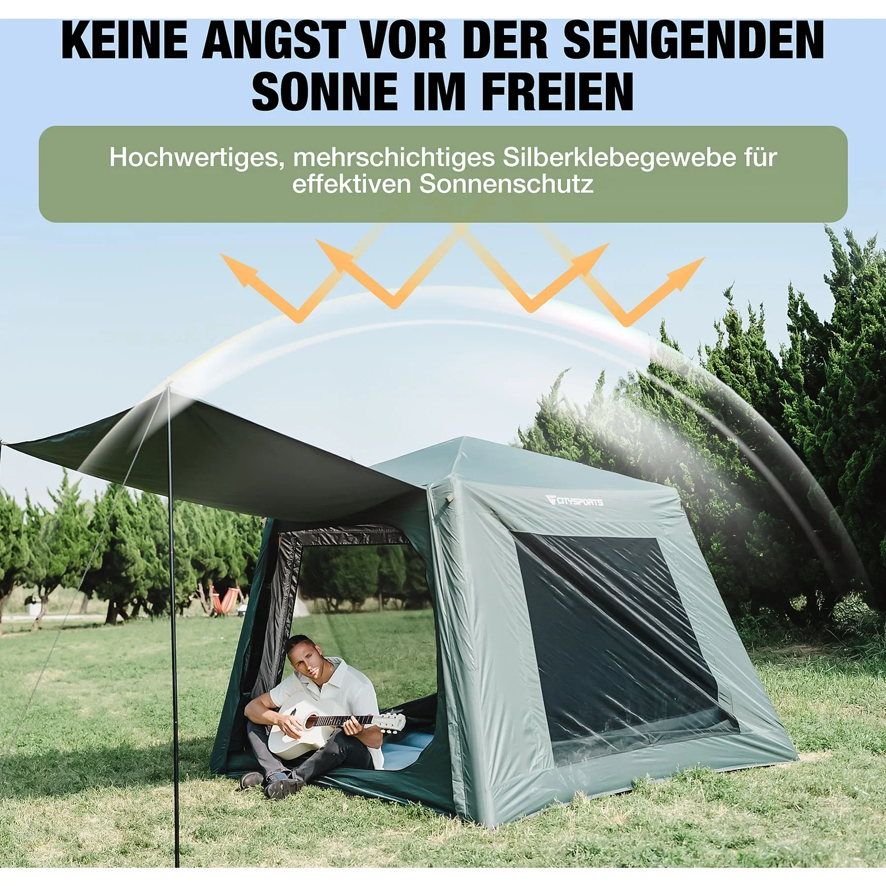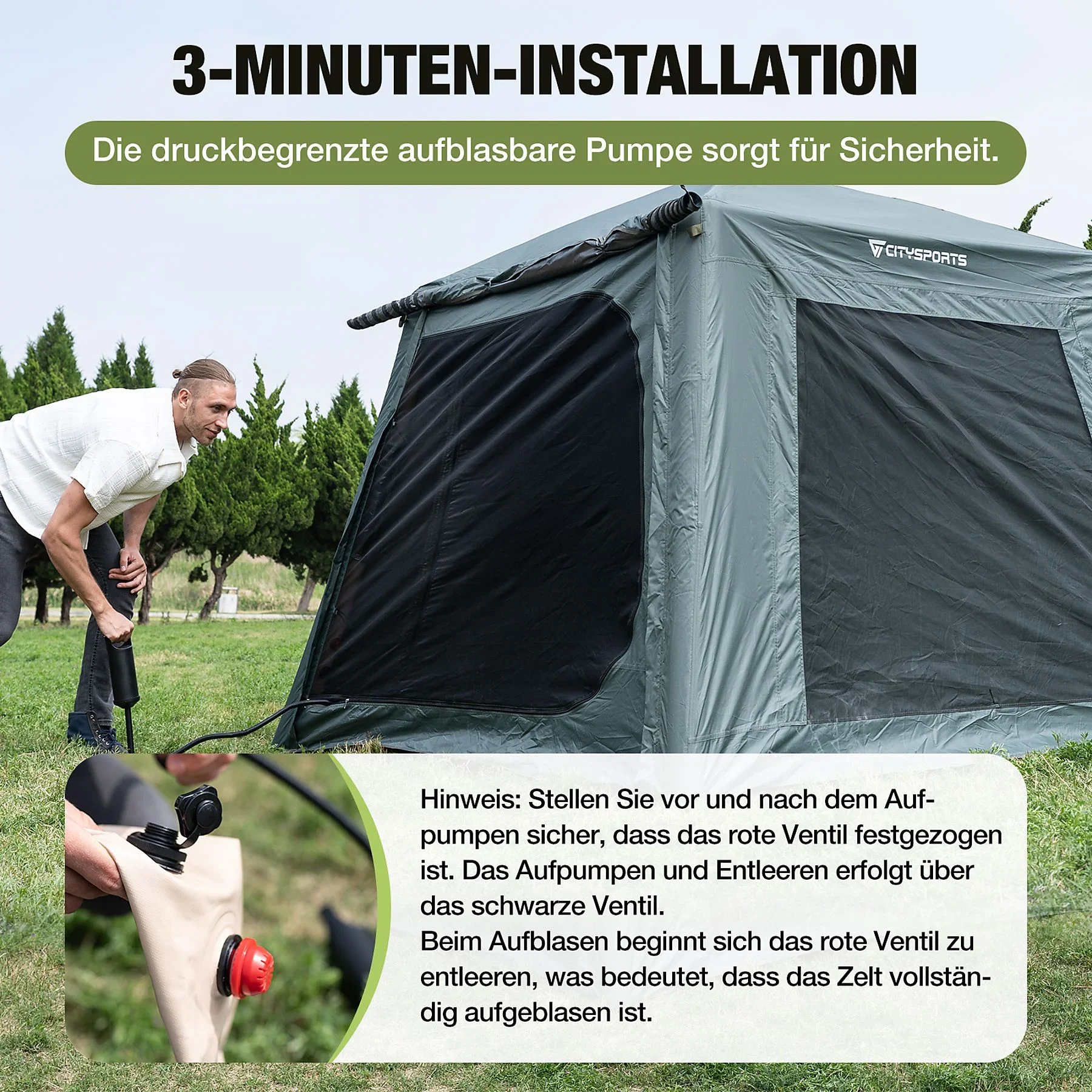 Aufblasbares Campingzelt mit großem Vordach & Rainfly – 2–4 Personen, Grün