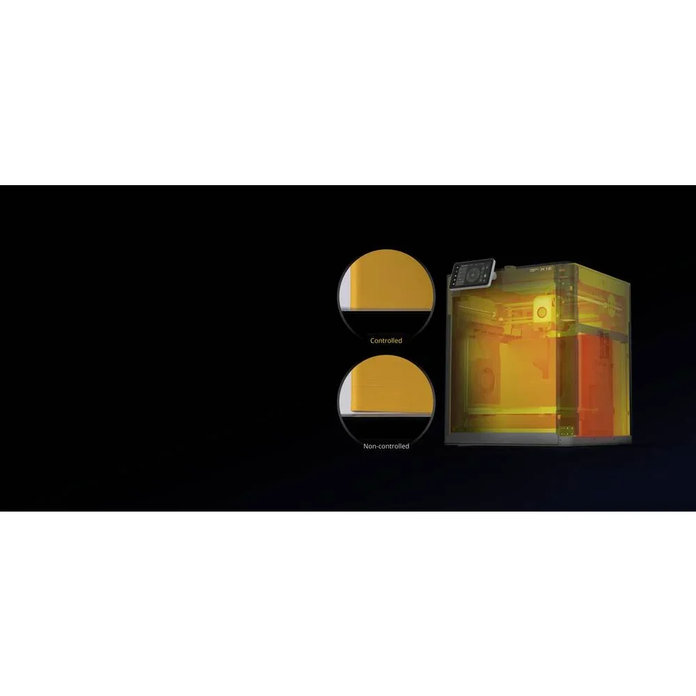 Der X1E verfügt über ein 12 W aktives Kühlungssystem, ein 40 W Keramik-Heizelement, ein flexibles Stahlblech-Druckbett und eine Hotend-Temperatur von bis zu 300 °C. Die KI-gestützte Fehlererkennung, Lidar-Sensoren und die integrierte Kamera (1080p) überwachen den Druckprozess in Echtzeit und sorgen für optimale Ergebnisse, selbst bei Hochgeschwindigkeit- oder Hochtemperaturmaterialien.
