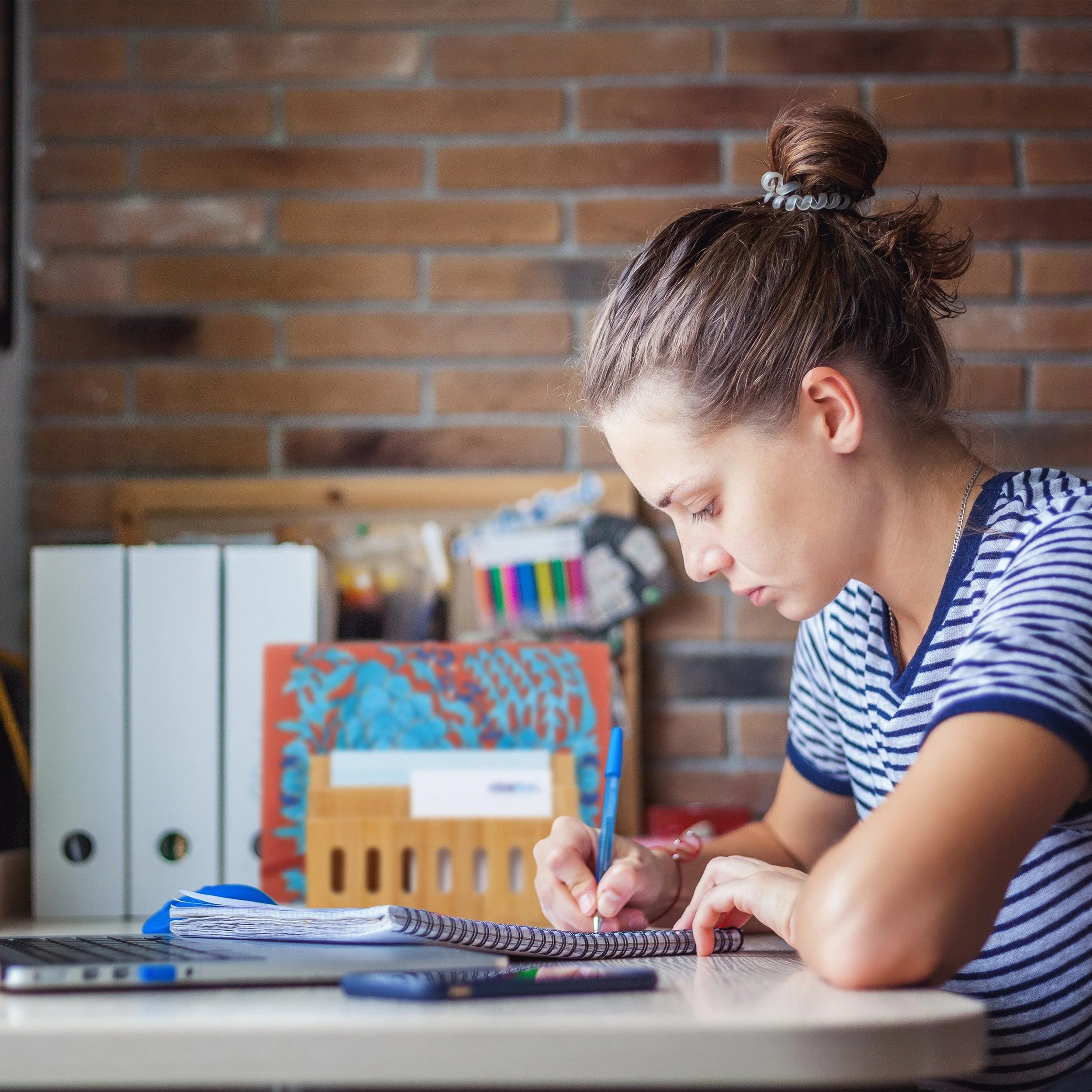 Das Stufendesign erleichtert den direkten Zugriff, ohne Unterlagen zu verdecken. Die warme Holzoptik schafft zusätzlich ein dekoratives, harmonisches Ambiente.