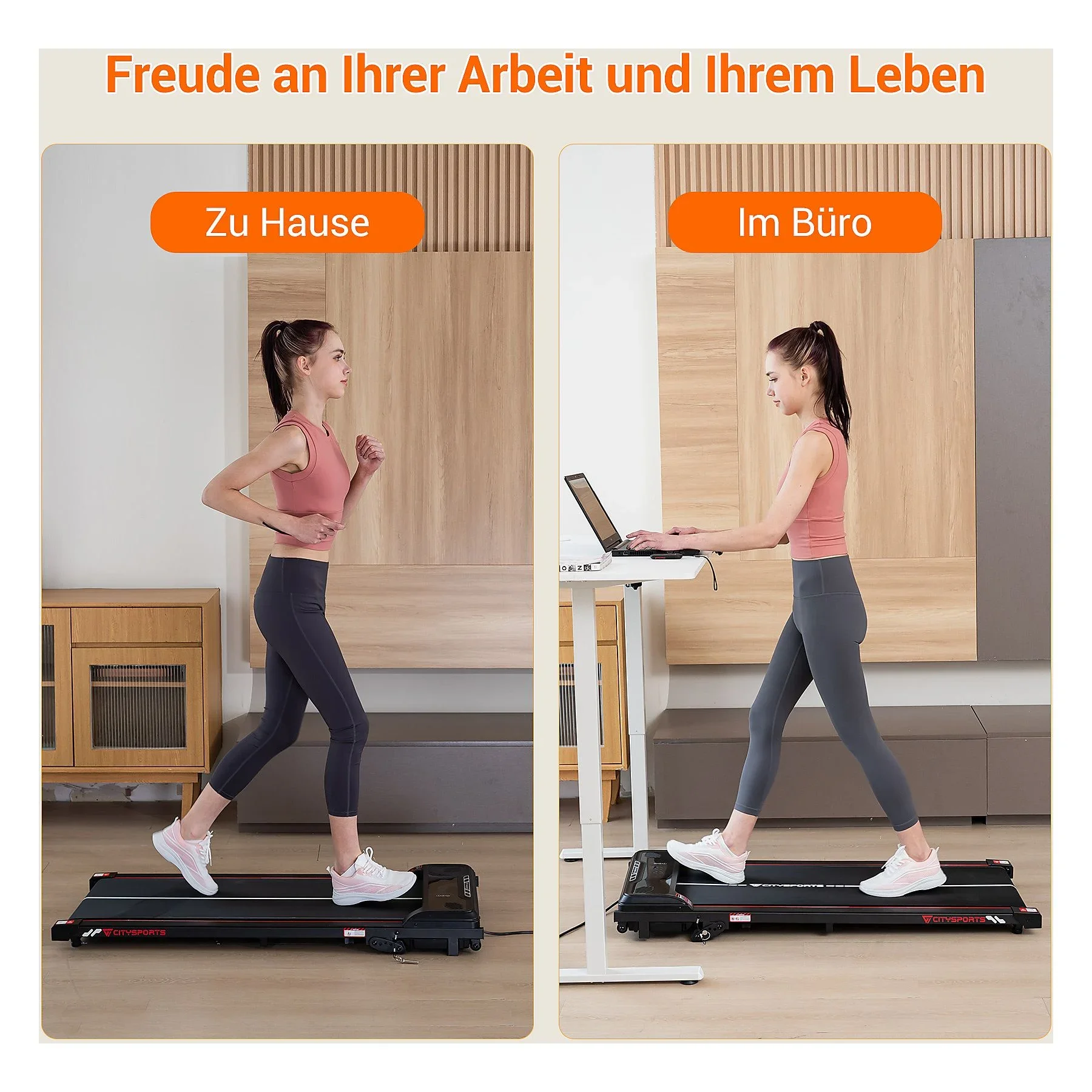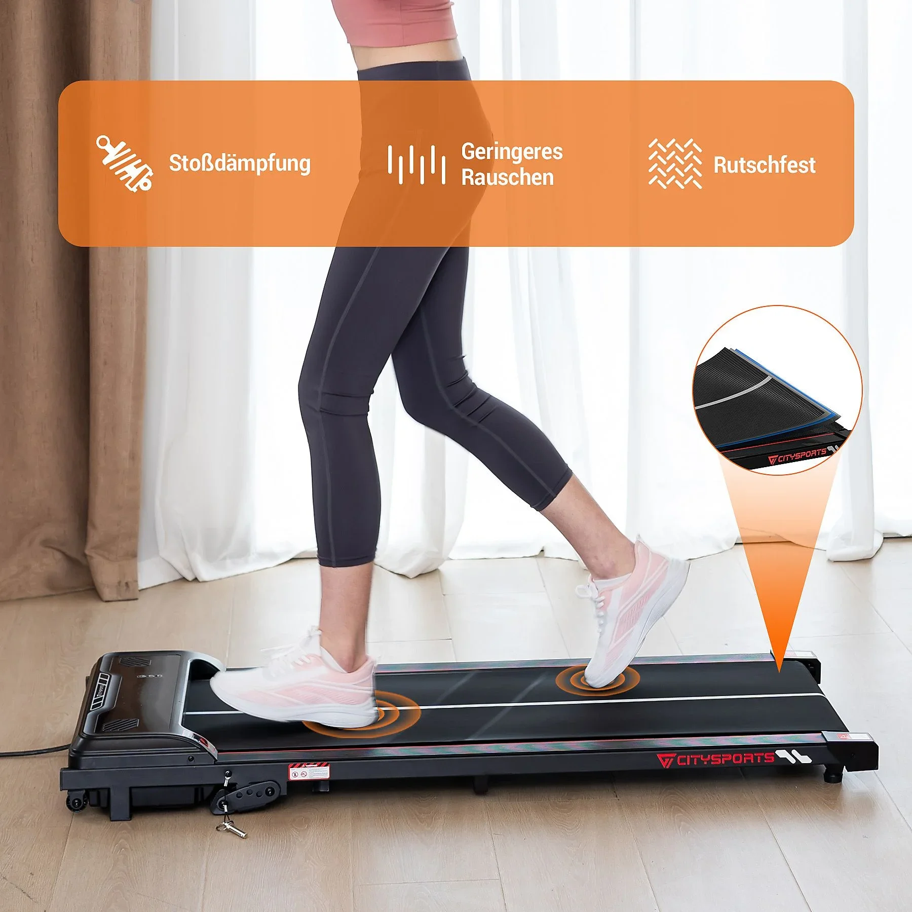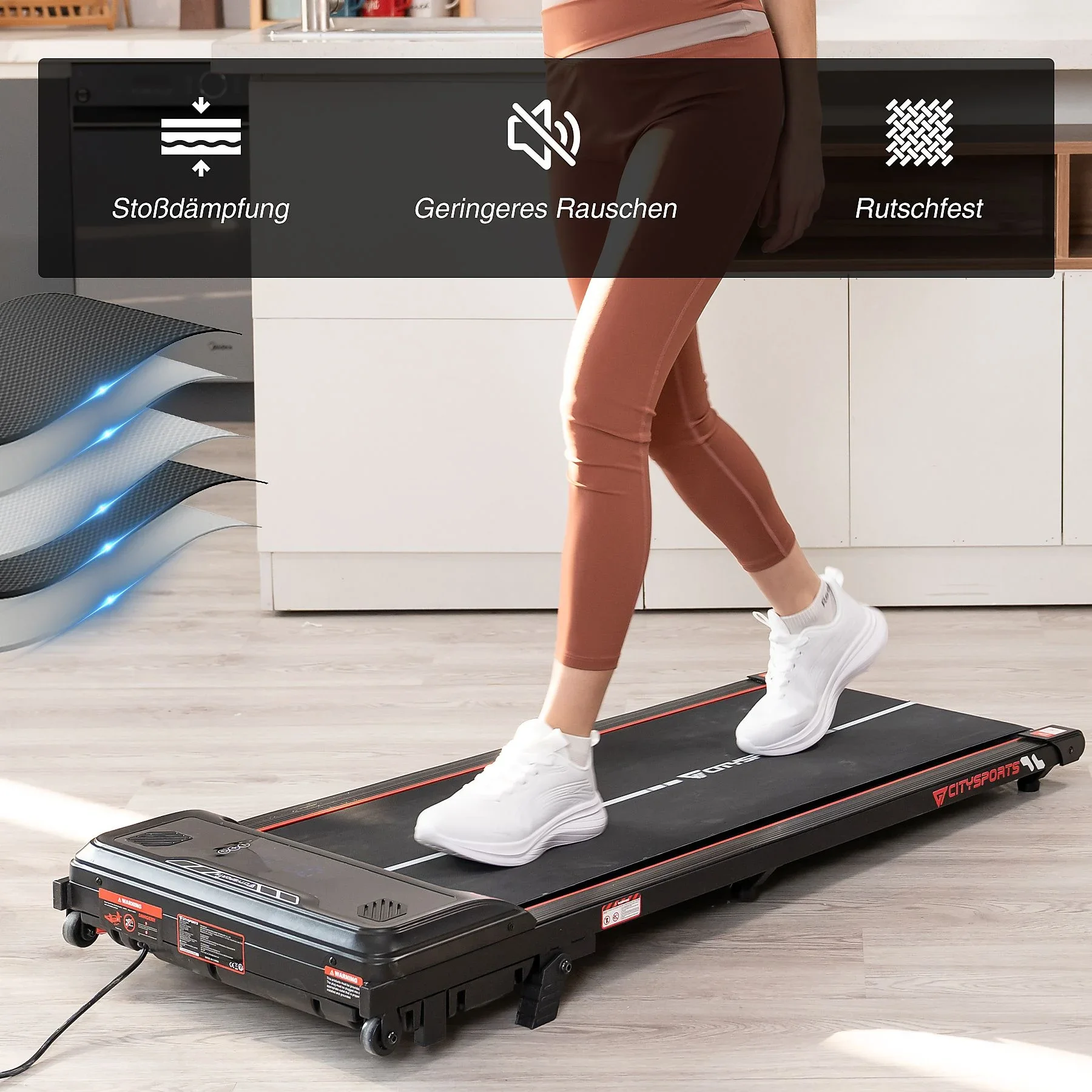 CITYSPORTS „WP6“ – Walking Pad für Zuhause & Büro, 1–6 km/h, Schwarz & Rot