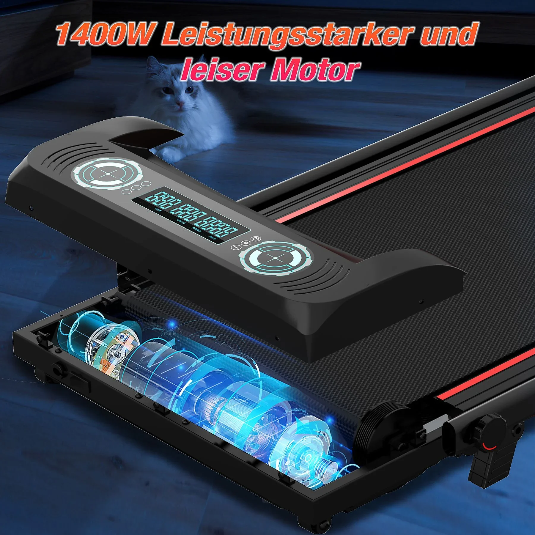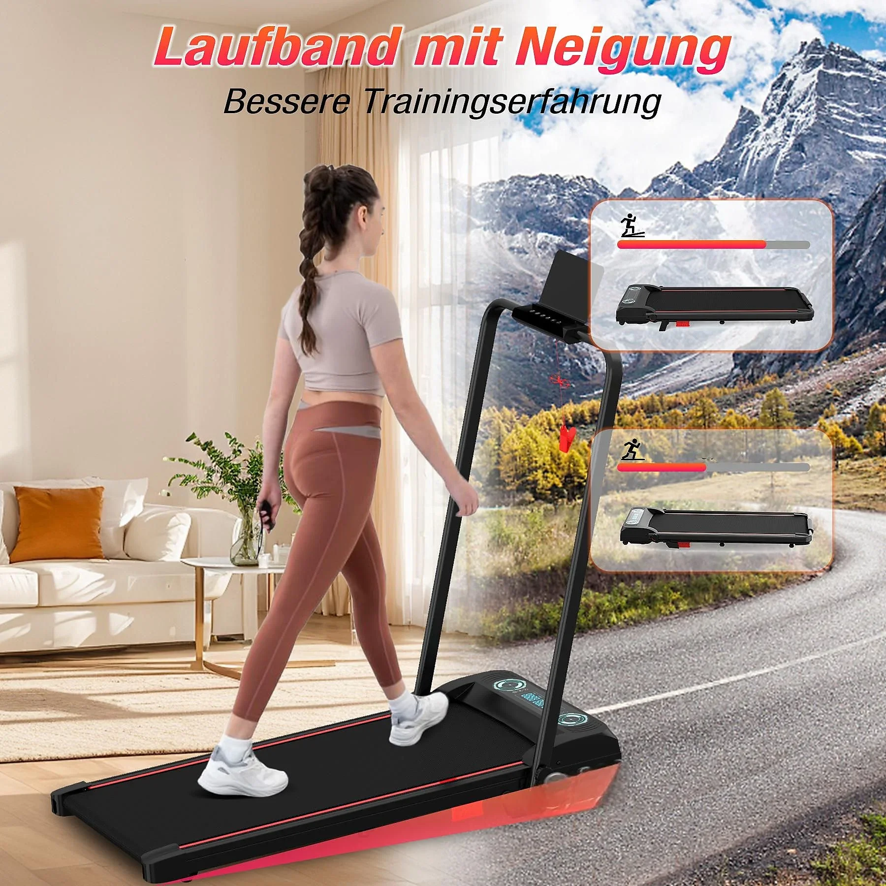 Leises, kompaktes 2-in-1-Laufband mit 3,4 % Steigung, LED-Anzeige und Fernbedienung – ideal für Walking und Workouts unter dem Schreibtisch