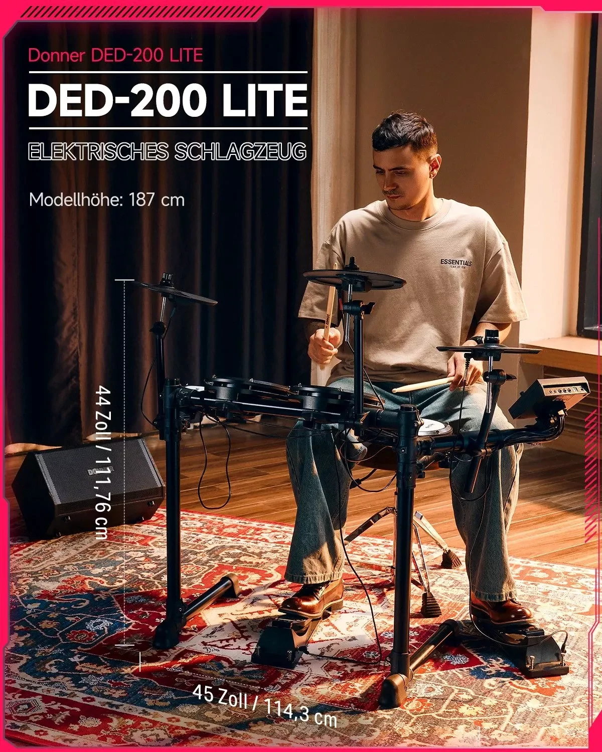 Produktinformationen "Donner DED-200 E-Drum Set – Elektronisches Schlagzeug mit 450 Sounds, Thron, Pedalen & Kopfhörern"