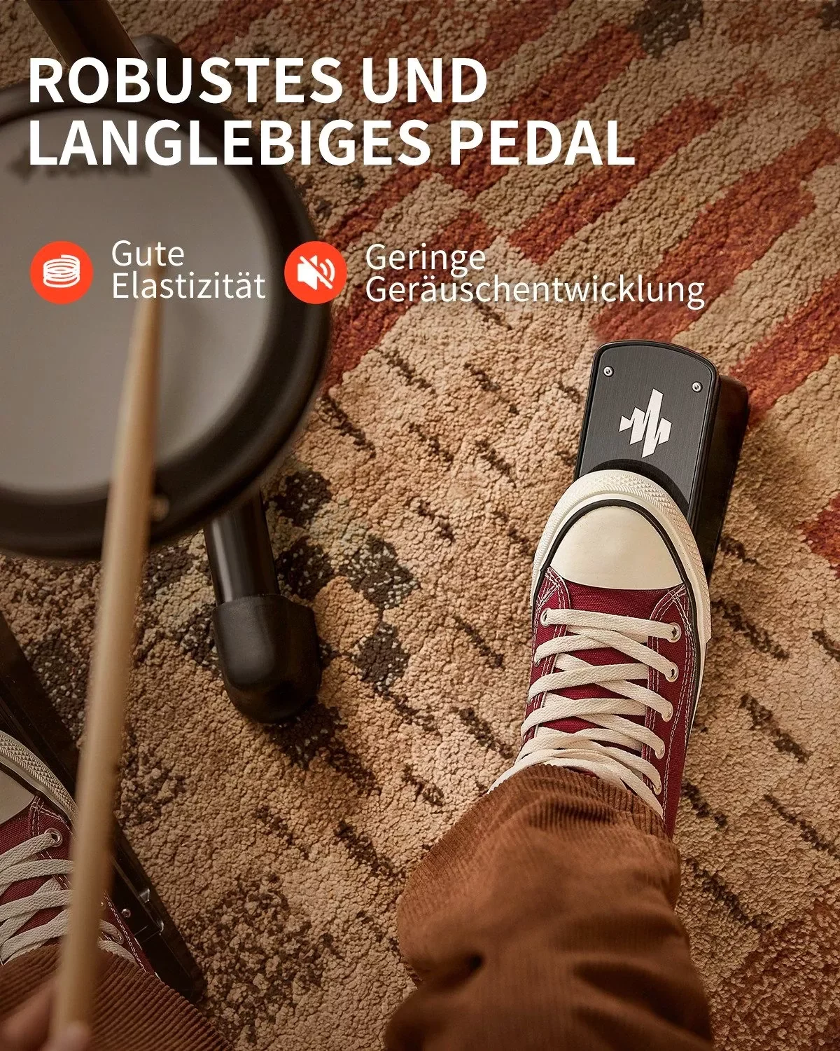 | Pads & Becken | 4× 6″ Mesh-Drumpads, 3× 10″ Becken mit voller Schlagzone |