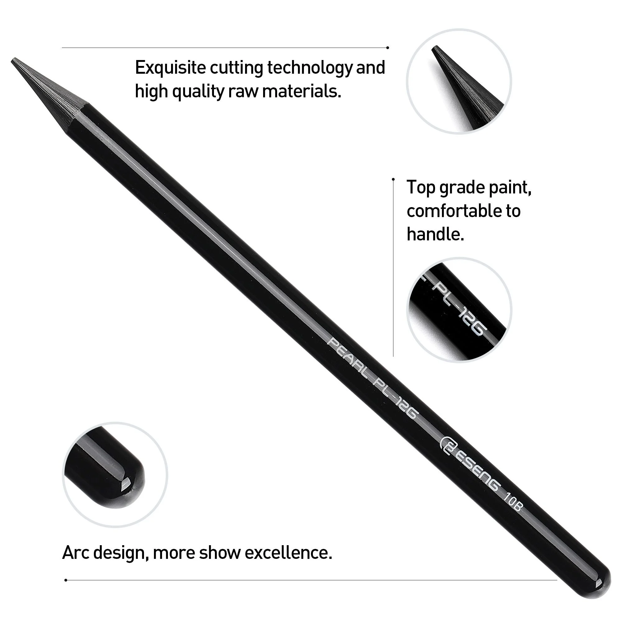Das ESENG PEARL PL-12G Set enthält 12 hochwertige Graphitstifte mit Härtegraden von 2H, HB, B bis 10B. Ideal zum Zeichnen, Skizzieren, Illustrieren oder Schreiben. Jeder Stift besteht aus reinem Graphit, vollständig ohne Holz oder Kunststoff – ein Stift ersetzt somit mehrere herkömmliche Bleistifte.