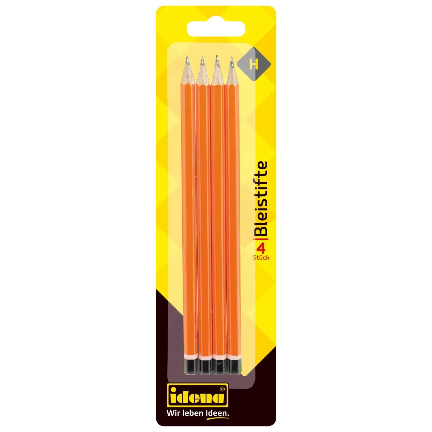 Das 4er Set Idena Bleistifte in Härte H bietet klassische, orange lackierte Schreibgeräte für präzises Schreiben und Zeichnen. Ideal für technische Skizzen, geometrische Aufgaben oder den Schulalltag. Dank der hexagonalen Form liegen die Stifte fest und angenehm in der Hand.