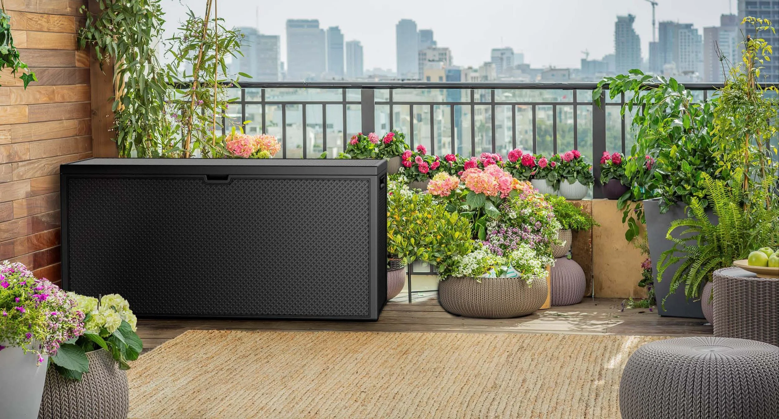 Die KETER Gartenbox „EMILY“ bietet geräumigen Stauraum für Sitzauflagen, Gartengeräte oder Spielzeug. Dank der wetterfesten und UV-beständigen Konstruktion bleibt der Inhalt geschützt – trocken und gleichzeitig gut belüftet. Ideal für Terrasse, Garten & Balkon.