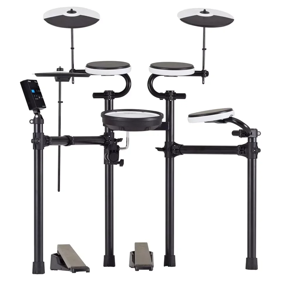 Das Roland TD-02KV ist die erweiterte Version des TD-02K und bietet ein besonders authentisches Spielerlebnis für Einsteiger und Wiedereinsteiger. Dank der PDX-8 Mesh-Head-Snare mit natürlichem Rebound fühlt sich das Spiel wie auf einem akustischen Drumset an. Mit dem TD-02 Modul stehen 16 spielfertige Drumkits, Coach-Funktionen, Metronom und USB-Audio/MIDI zur Verfügung, ideal zum Üben oder Aufnehmen am Computer.