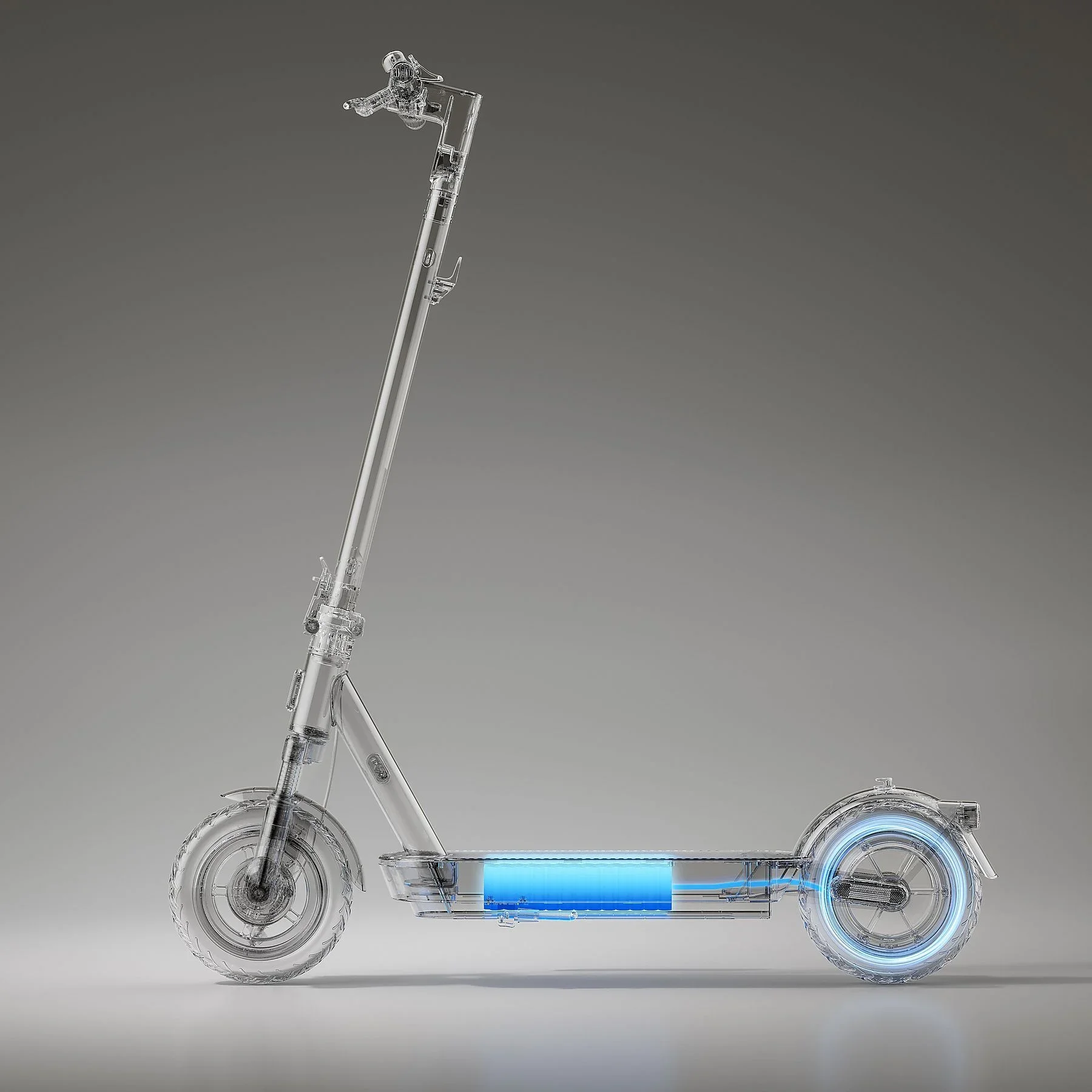 - Duale Federung vorne, 10-Zoll schlauchlose Reifen für komfortables Fahren