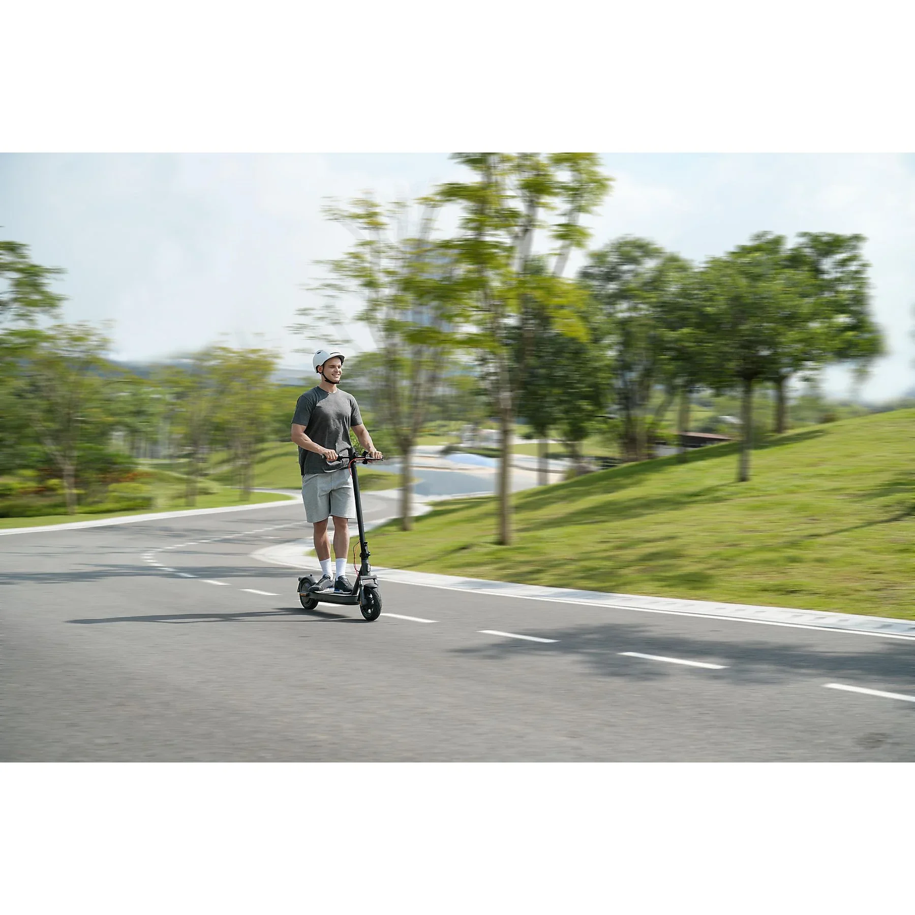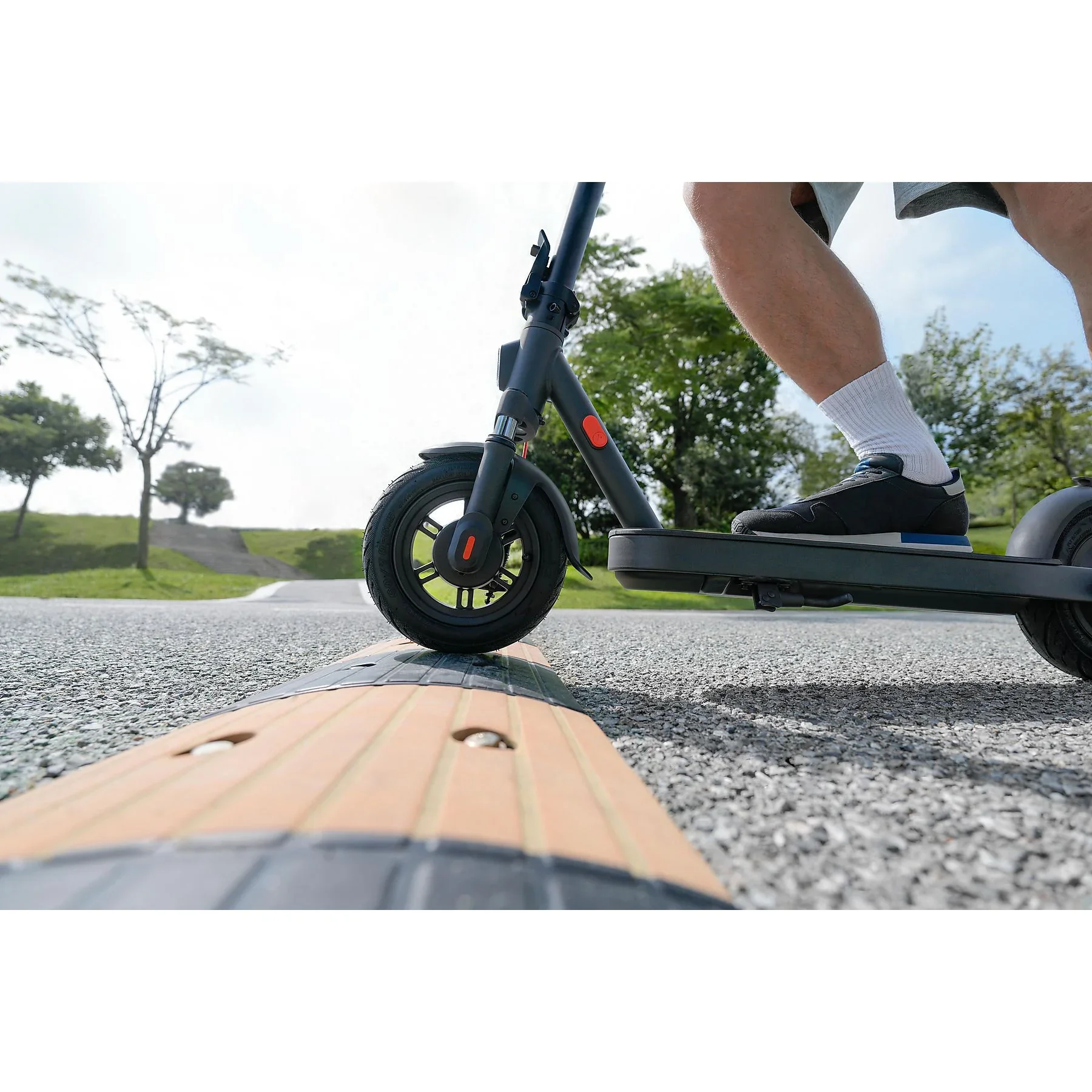 - Duale Federung vorne, große 10-Zoll-Reifen für stabilen Kurvenlauf