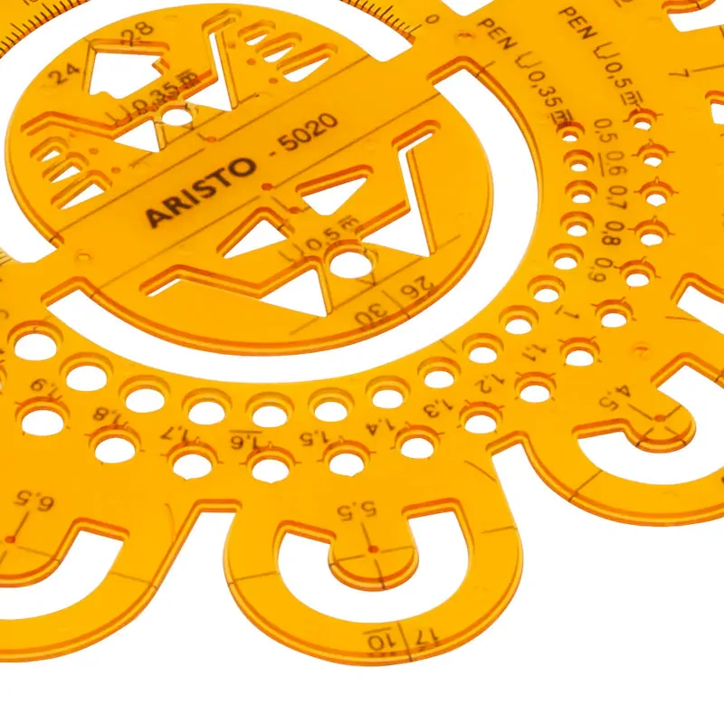 Zeichenschablone zur präzisen Konstruktion von Abrundungen, Kreisabschnitten und technischen Übergängen. Ideal für technische Zeichnungen, Architektur- und Konstruktionspläne in Ausbildung, Studium und beruflichem Umfeld.
